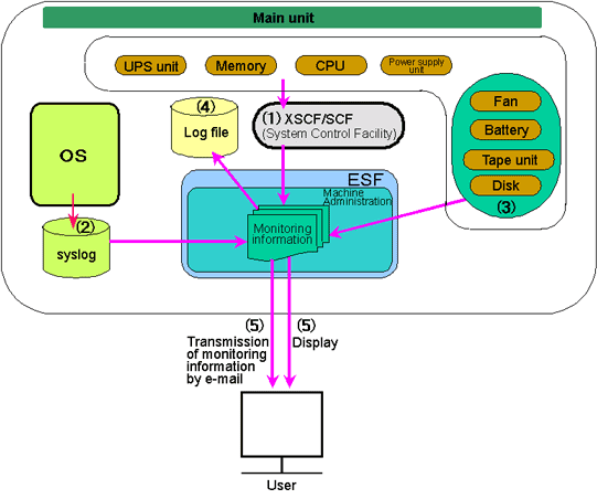 Machine Administration collects hardware monitoring information with XSCF or SCF. |