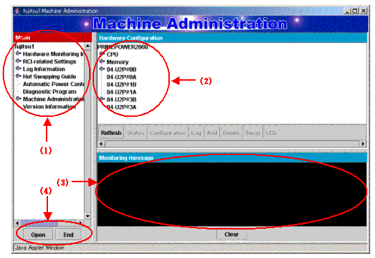 (3): If the status of the hardware component to be monitored changes, a message appears in this area.