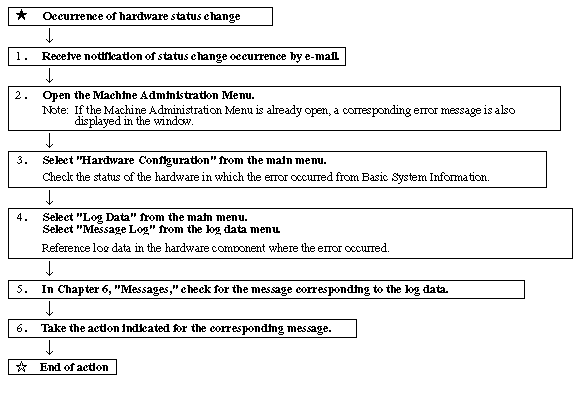 The following shows an example of the actions taken in response to changes of the hardware status.