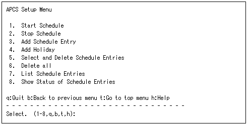 This section describes how to operate the Auto Power Control System (APCS) Administration menus.