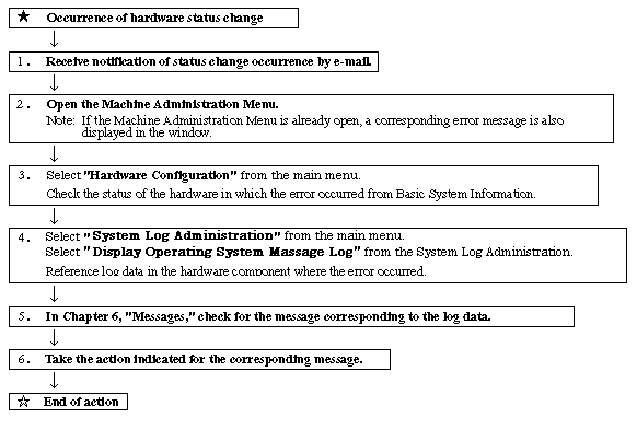 The following shows an example of the actions taken in response to changes of the hardware status.