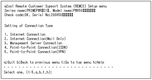 The Remote Customer Support System (REMCS) Setup menu opens.