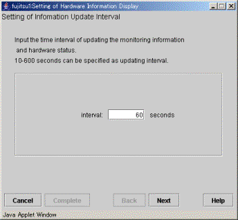 Specify the interval for updating hardware information in the range of 10 to 600 seconds.