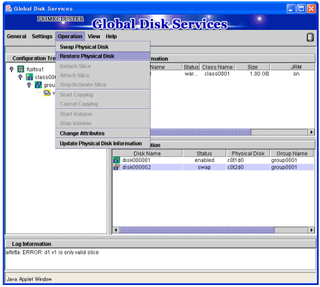 # /usr/sbin/sdxswap -I -c <class name> -d <SDX disk name>