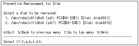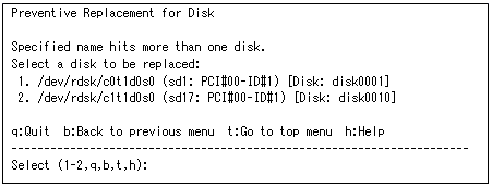 Even when a physical disk name is entered, this may not be sufficient to uniquely identify one disk. In this event, candidate disks are listed so that you can select one as shown below.