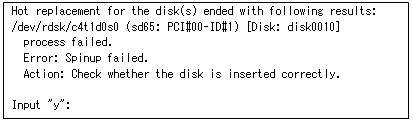 If an error occurs during replacement or mount processing, an error message displaying the action to be taken appears as shown below.
