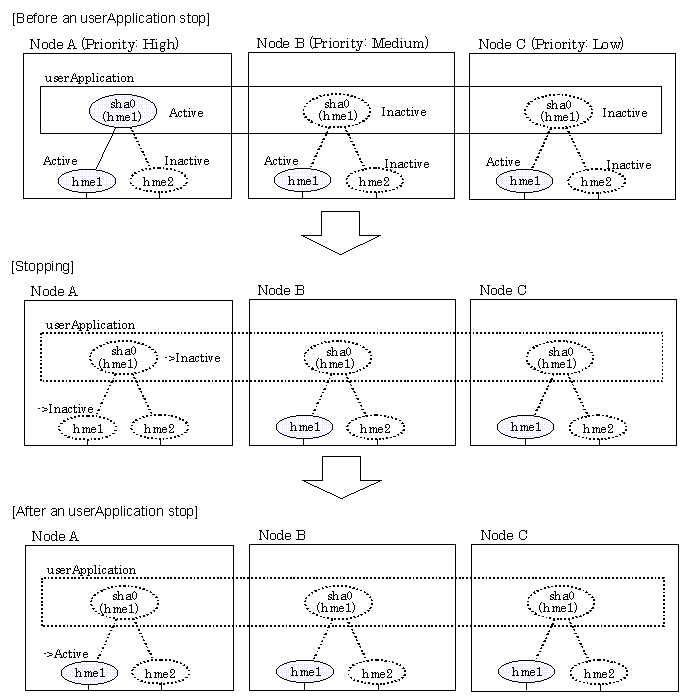 | Chapter 5 GLS operation on cluster systems | > 5.1 Outline of Cluster System Support | > 5.1.3 Cascade | > 5.1.3.4 Stopping |