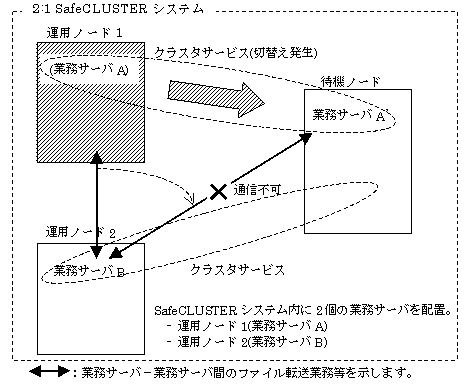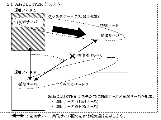 以下に上記の3つの条件について2:1運用待機のSafeCLUSTERシステムの例で示します。
