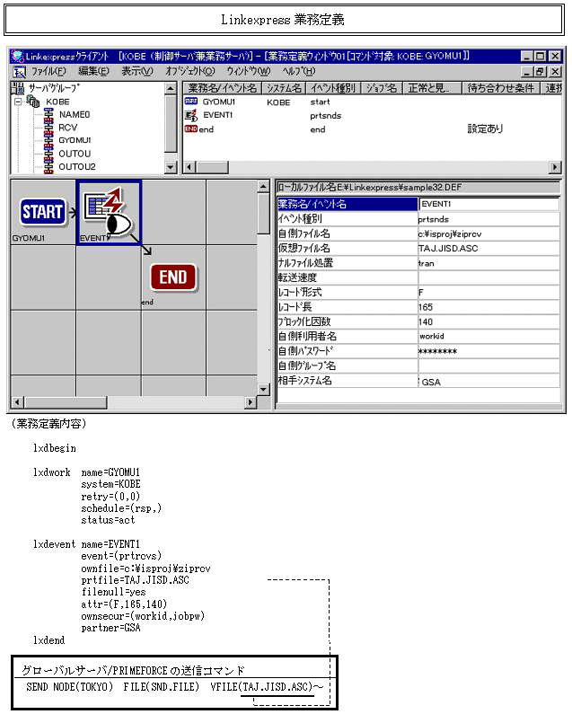 4.1.2 グローバルサーバ/PRIMEFORCEとUNIXサーバ間のファイル集配信業務(HICS)