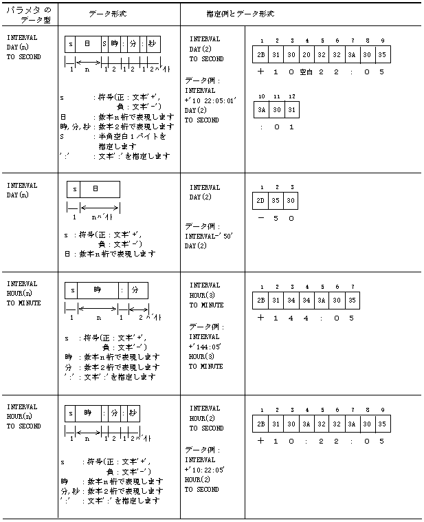 備考.時間隔型については、文字型のデータとして表現します。