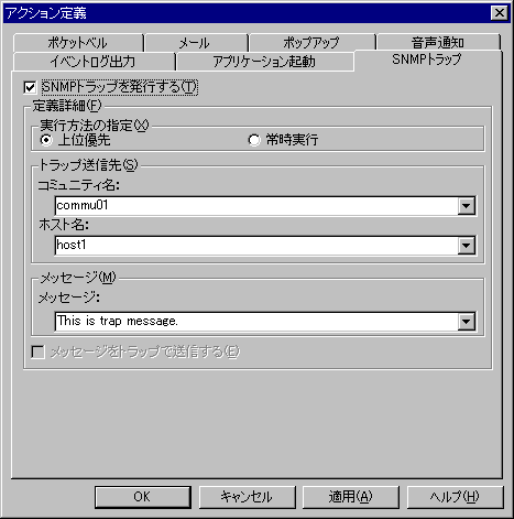 [図:[アクション定義]ダイアログボックス−[SNMPトラップ]シート]