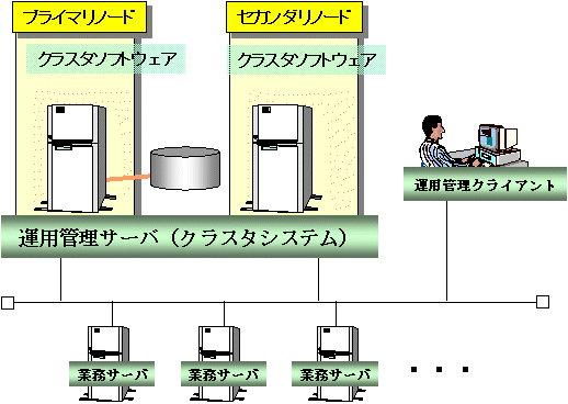 運用管理サーバをクラスタシステムにした場合の構成図を以下に示します。