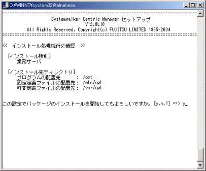 以下の画面で、インストールを開始する場合は“y”を、中止する場合は“n”を入力します。