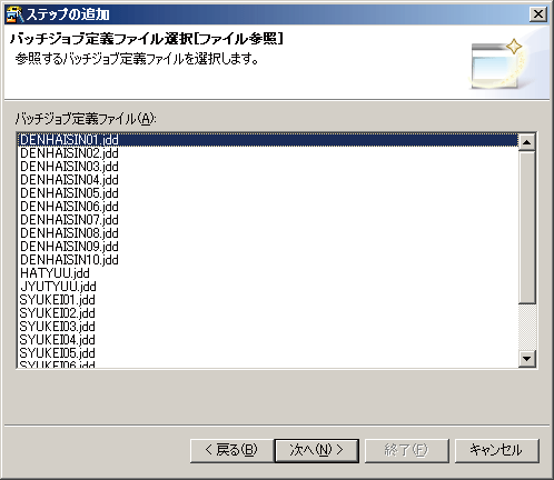 - [次へ]ボタンをクリックします。バッチジョブ定義ファイル選択画面が表示されます。
