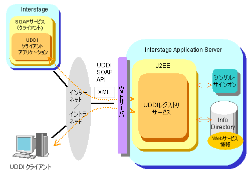 Interstage Application Serverに含まれるソフトウェアだけで、UDDIレジストリを運用することができます。