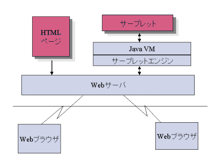 サーブレットエンジンとは、Webサーバとサーブレットの実行の間を取りもつプログラムであり、Webブラウザからのアクセスにしたがって、JavaVM上にサーブレットプログラムをロードし、サーブレットAPIの呼出しを実行します。
