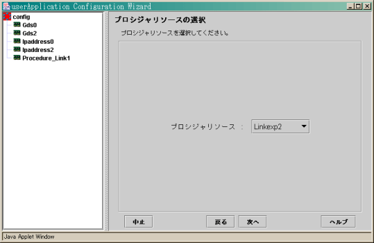 - プロシジャリソースの選択で、2で指定したLinkexpressのリソース名"Linkexp2"を選択し、"次へ"をクリックします。