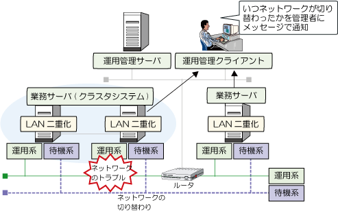 Systemwalker Centric Managerでは、伝送路の切り替えを監視することにより、障害に対する復旧を迅速に行うことができます。