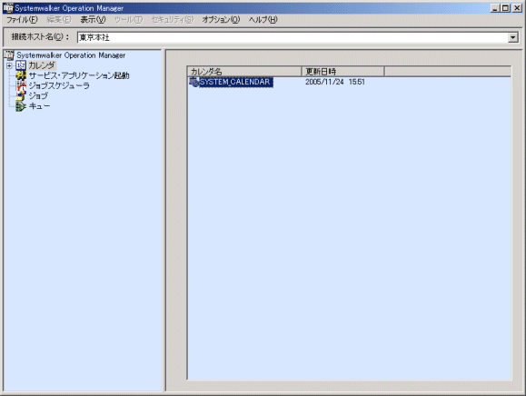 [Systemwalker Operation Manager]ウィンドウの初期画面で、業務選択ウィンドウ(画面左側)より“カレンダ”を選択します。