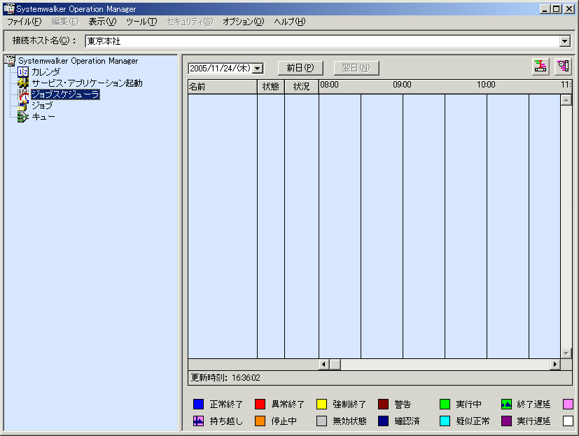 [Systemwalker Operation Manager]ウィンドウの業務選択ウィンドウより“ジョブスケジューラ”を選択します。