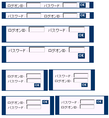 縦横の並び順(横/縦)、ログオンIDの表示順序(前/後)、OKボタンの配置(横/下)について変更できます。