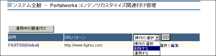 以下の操作により、休止中状態のカスタマイズ関連付け定義を削除することができます。同時に複数の定義を削除できます。
