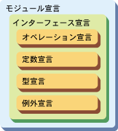 モジュール宣言では、IDL定義のオペレーション名や型名などが、ほかのIDL定義と重複しないように、オブジェクトのグループ化を定義します。