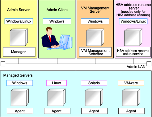 The Admin LAN is set up separately from the Public LAN used by applications on managed servers.