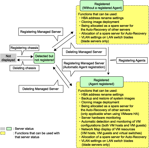 To register a blade server (PRIMERGY BX series), its enclosing chassis must be registered first.