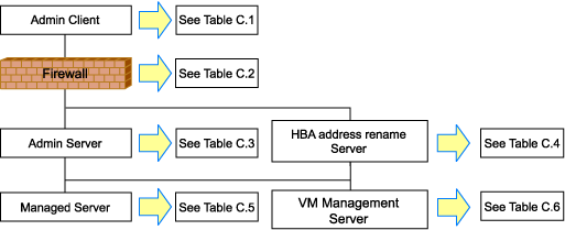 The following tables show the port numbers used by Resource Coordinator VE. Communications should be allowed for each of these ports for Resource Coordinator VE to operate properly.