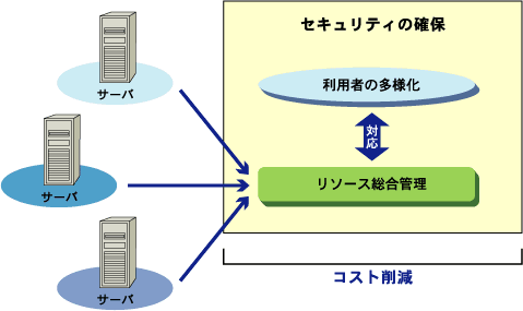 これにより、統合した各システムのリソース管理を一元管理し、多様化した利用者に対しても細かな設定が可能になります。それにより、利用者のアクセス権限を細かく管理できます。