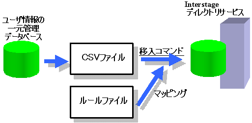 データベースの機能を利用して、ユーザ情報の一元管理データベースからCSV形式のデータを取り出します。なお、データベース上のデータが証明書などのバイナリデータの場合は、テキスト(Base64)形式に変換しておく必要があります。