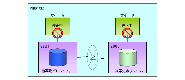 サイトBの運用を開始します。この段階では同期処理はサスペンド状態なのでサイトBのボリュームに対して行われた更新データはサイトAには反映されません。