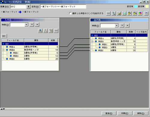 図6.38 一般フォーマット(1フォーマット)のフォーマット変換設定画面(設定例)