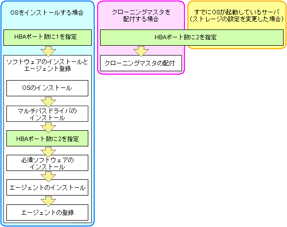 ただし、OSをインストールする場合、マルチパスドライバ設定前の状態は、"1"を指定します。次に、マルチパスドライバを設定したあと、"2"を指定し再設定します。