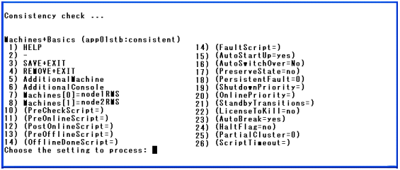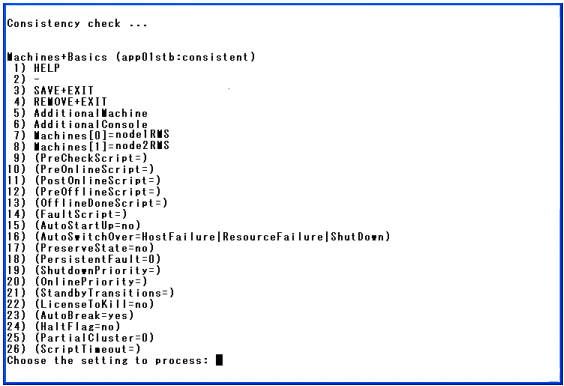 [SAVE+RETURN]を選択すると、以下の画面が表示されます。[AutoSwitchOver]の値が“HostFailure|ResourceFailure|ShutDown”に設定されていることを確認してください。