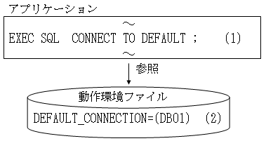 (2) CONNECT文の実行時は、動作環境ファイルのDEFAULT_CONNECTIONの情報を参照します。