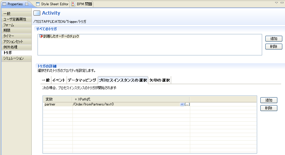 特定のプロセスインスタンスに対してだけトリガを実行する場合は、以下の手順に従います。