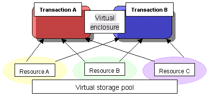 While the virtual storage pool is grouped by resource (physical disks), the virtual enclosure is grouped by transaction.