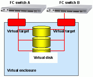You can use the virtual target attached to a virtual enclosure as an access path to the virtual disk.