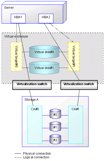 Should such physical connection routes fail, access to the physical disk is disabled and results in a virtual disk access error.