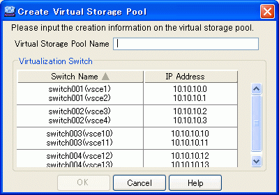Enter the following information on the "Create Virtual Storage Pool" dialog box: