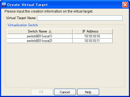 The virtual target name entered in this dialog box is necessary for Virtual Storage Conductor management, and the dialog box is not meant for entering the WWPN. The WWPN required for virtual disk access by the transaction server is automatically assigned when a virtual target is created.