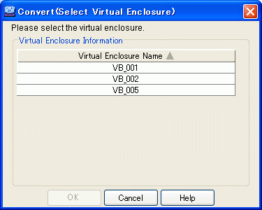 The "Convert (Select Virtual Enclosure)" dialog box appears.