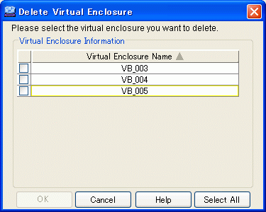 Start up the "Delete Virtual Enclosure" dialog box is as follows:
