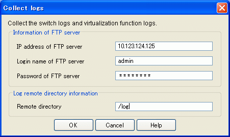 This section describes how to collect virtualization log information and virtualization switch log information to the specified FTP server.