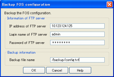 The "Backup FOS configuration" dialog box appears.