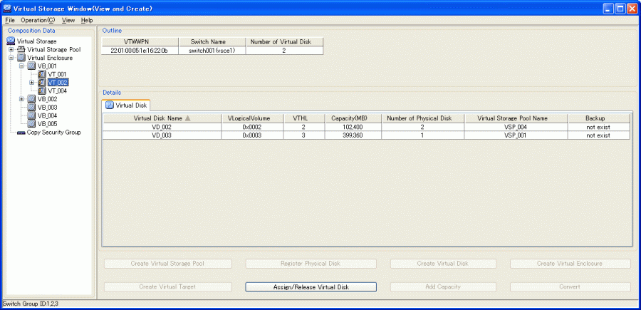 The following describes the window displayed when you select the virtual target name under the Virtual Enclosure in the Composition Data tree.