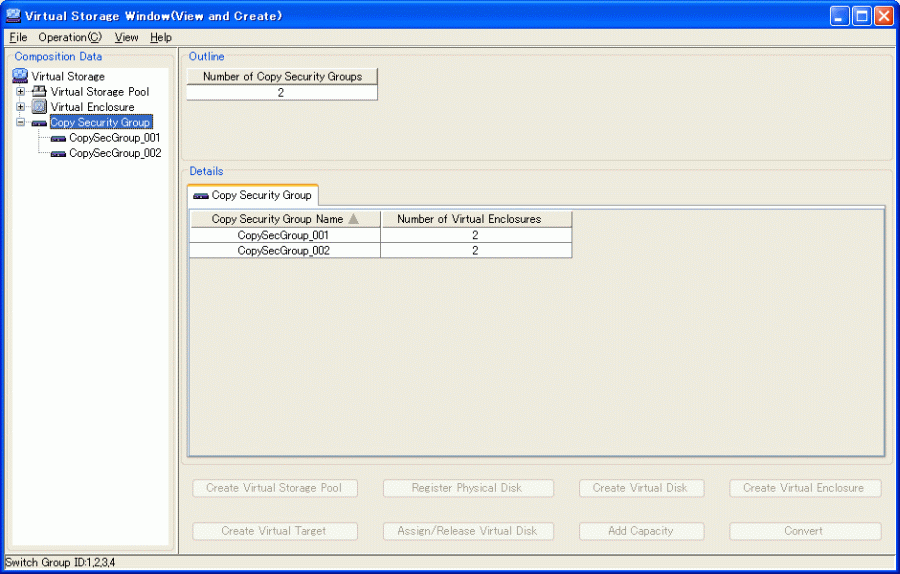 Number of Virtual Enclosures | The total number of virtual enclosures that have been registered with each copy security group |