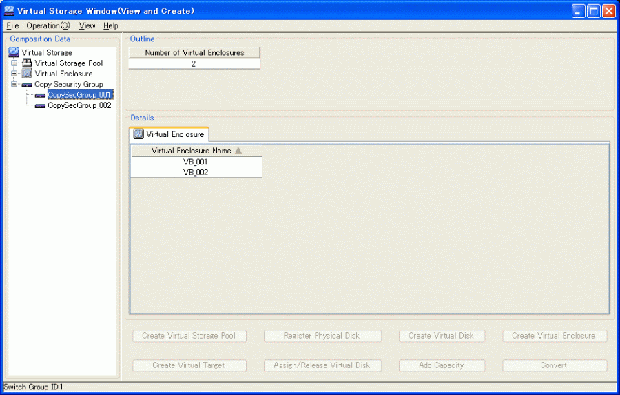 Virtual Enclosure Name | The names of the virtual enclosures registered with the copy security group |